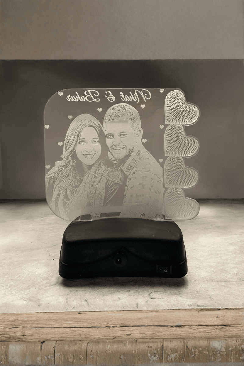 5 mm pleksiglass üzerine lazer işleme ile hazırlanır. Resim, isim, yazı ve tarih eklenerek tamamen size özel hale getirilir.