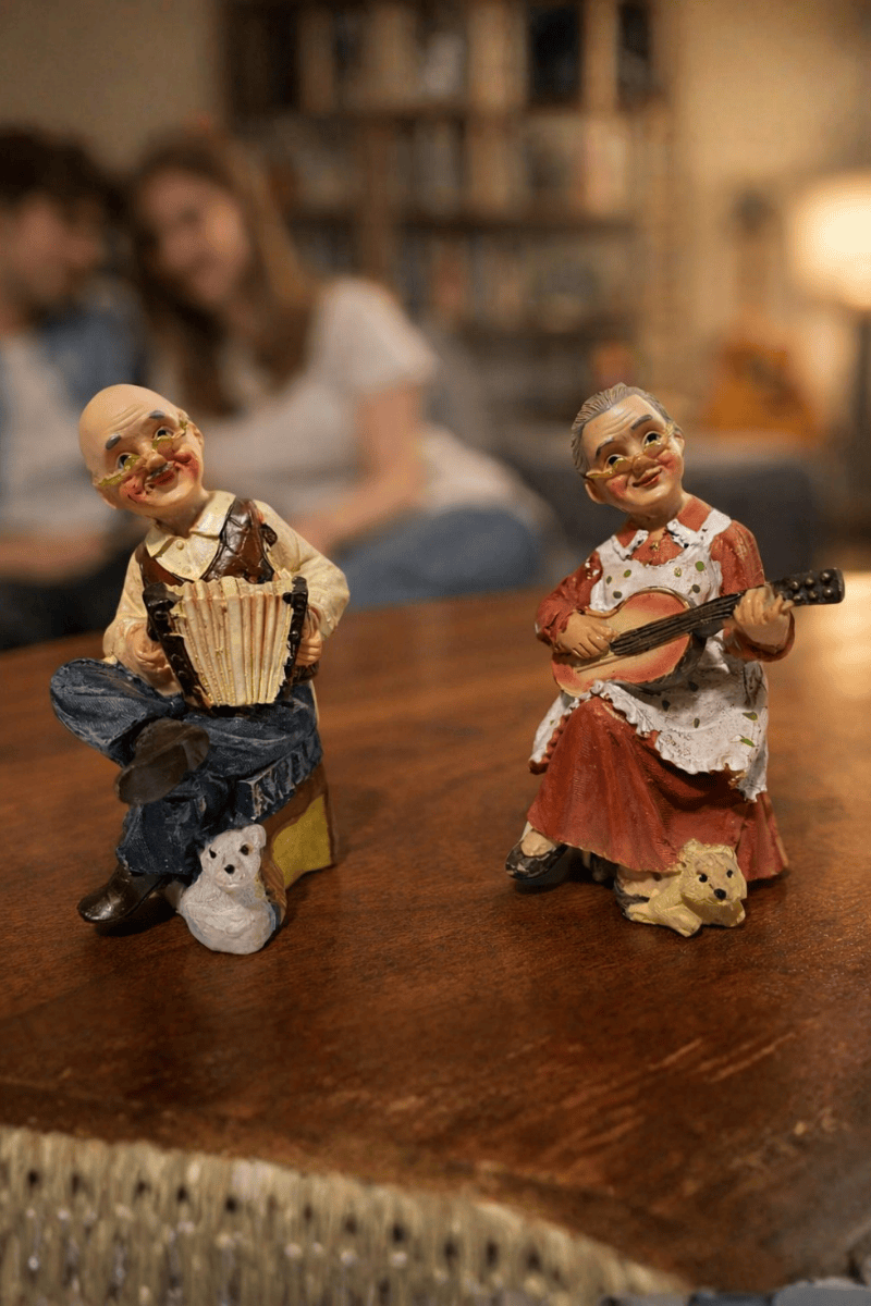 Akordiyon & keman çalan ihtiyar çift biblo