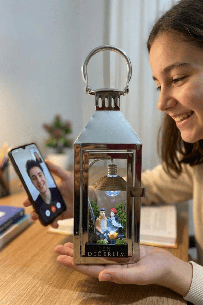 Hediye Müzesi atölyesinde, "En Değerlim" mesajıyla taçlandırılan bu özel tasarım; hasır detaylı aydınlatması ve doğayı anımsatan minyatür bitkileriyle sadece bir ışık kaynağı değil, duygu dolu bir sanat eseridir. İster çalışma masanızda size eşlik edecek bir motivasyon kaynağı, ister sevdiklerinize olan bağınızı temsil eden unutulmaz bir hediye... Bu zarif fener, mesafeleri bir gülümsemeyle kısaltmak ve zamanı sadece rakamlarla değil, sevdiklerinizin başucunda bıraktığınız o huzurlu ışıkla takip etmeniz için tasarlandı.