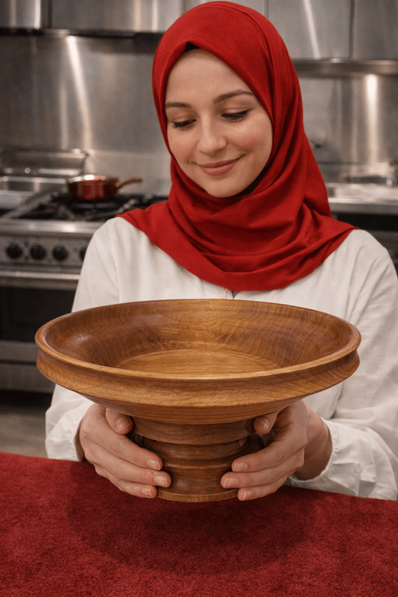 Hediye Müzesi ustalığıyla, masif ceviz kütüğünden elde şekillendirilen bu tasarım, pürüzsüz yüzeyi ve yumuşak hatlarıyla ahşabın doğal sıcaklığını en saf haliyle hissettirir. El yapımı üretim süreci sayesinde her bir parçada farklılaşan hare yapısı ve damar dokusu, ürünü kişiye özel ve benzersiz kılar. Doğal malzemesi sayesinde gıda sunumuna uygun olan bu seçkin parça, hem günlük kullanımda hem de özel davetlerinizde sofranızın en doğal ve şık eşlikçisi olacaktır.