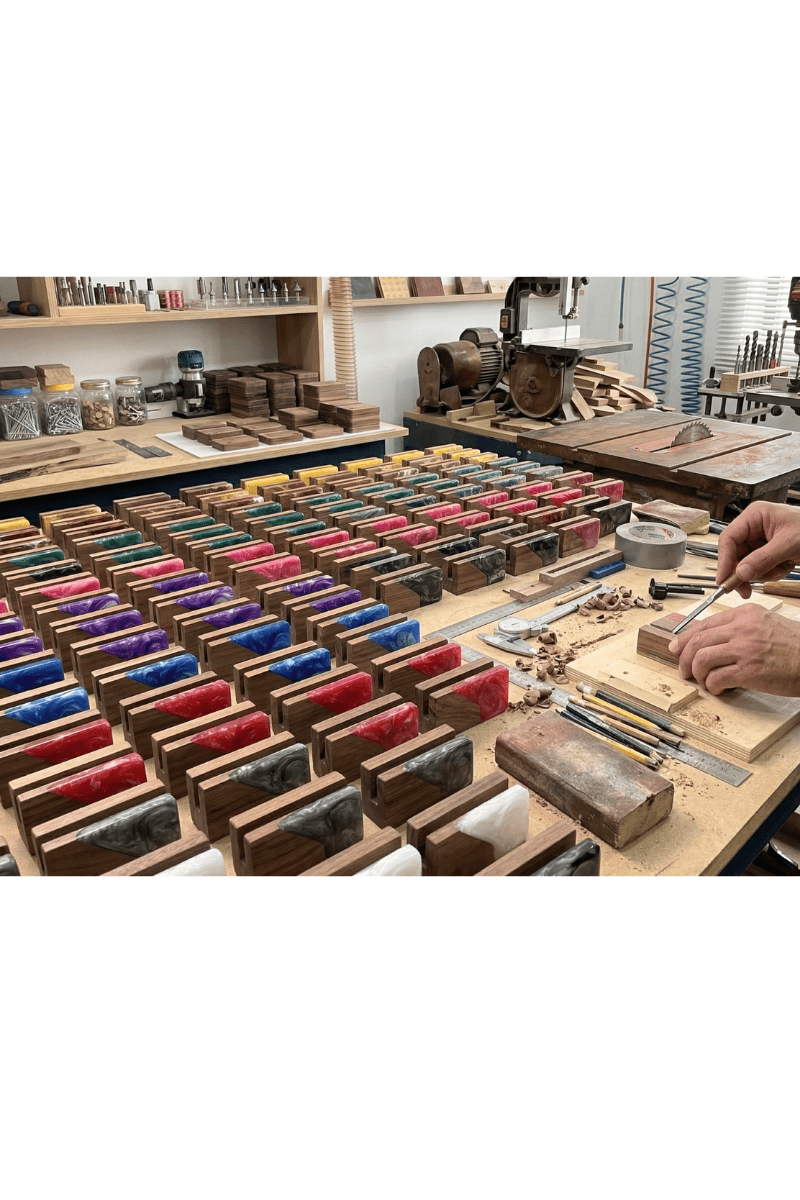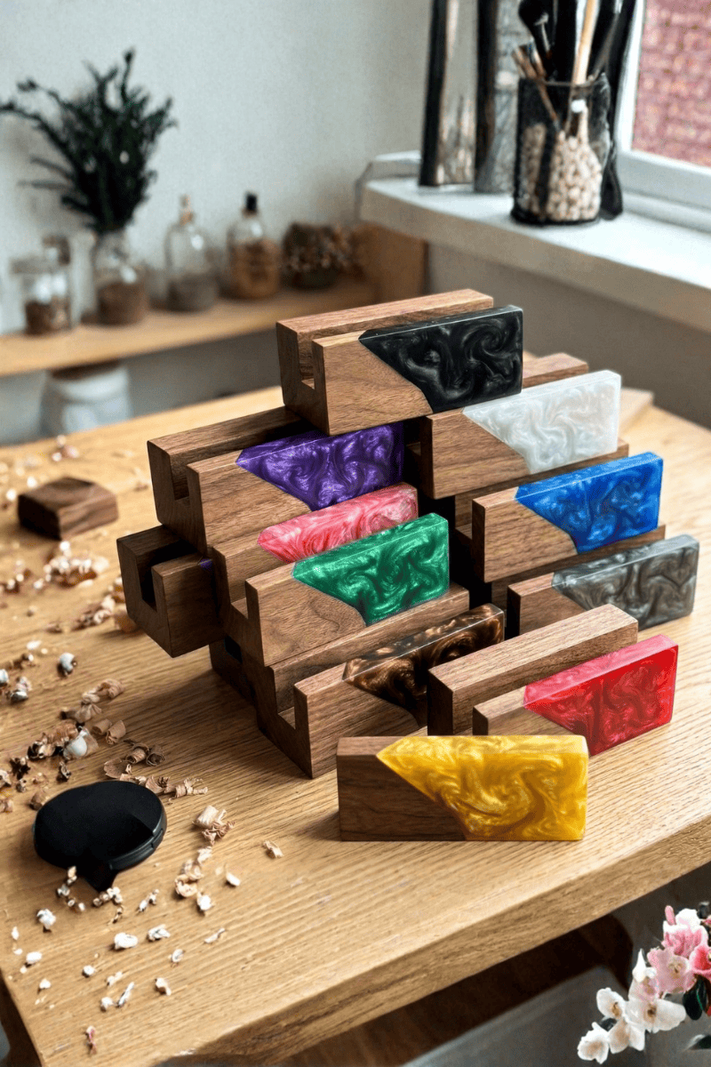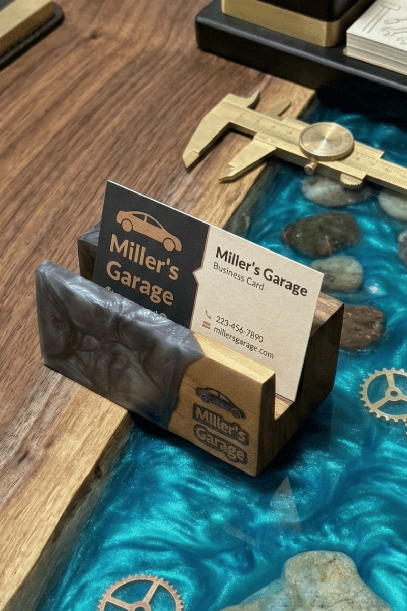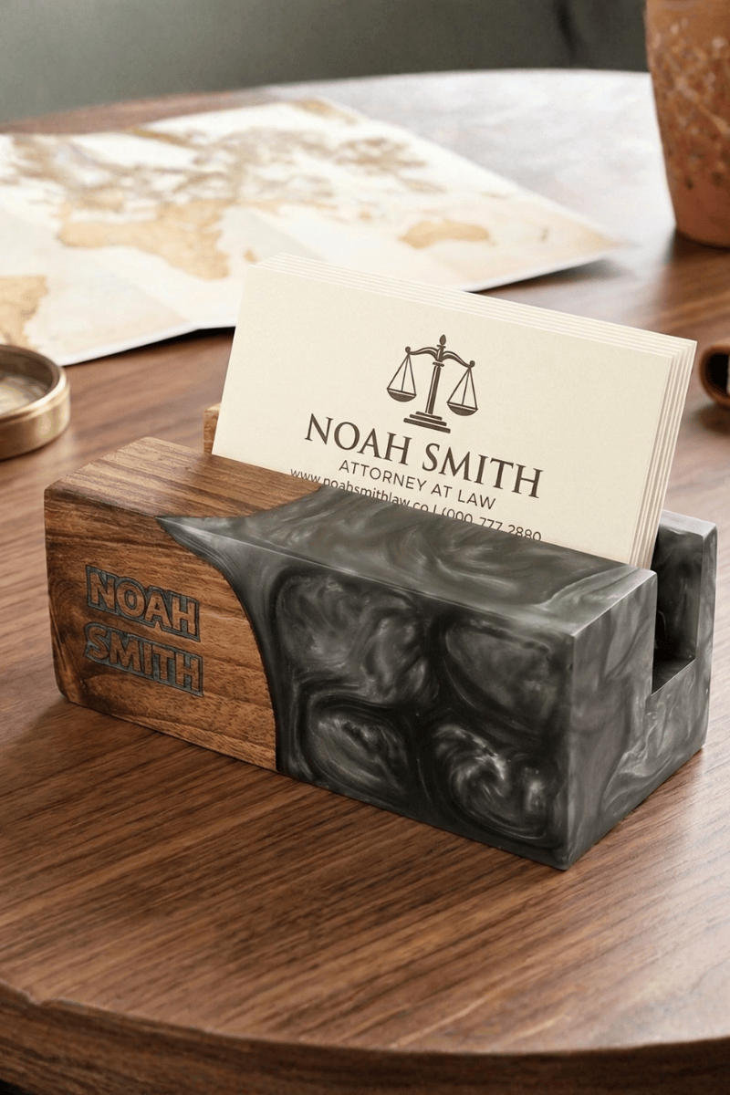Ceviz ağacının vakur duruşunu epoksinin modern enerjisiyle birleştiren bu kişiye özel kartvizitlik, profesyonel imajınızı masanıza sanatsal bir dokunuşla taşır. Masif ceviz odununun karakteristik koyu tonları ve dayanıklı yapısı, canlı renk geçişlerine sahip epoksi dolgu ile harmanlanarak çalışma alanınızda seçkin bir odak noktası oluşturur.