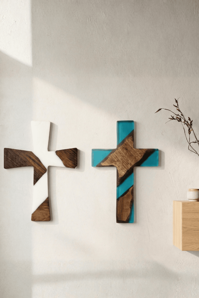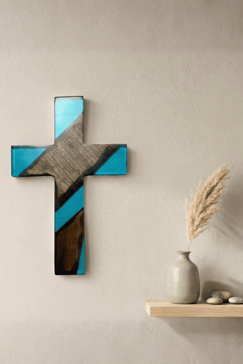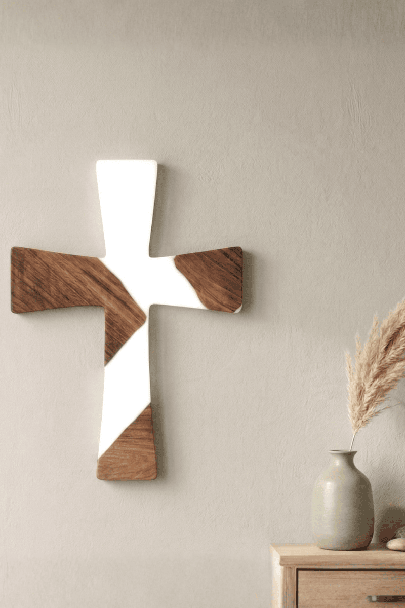 Ceviz ağacının asil karakterini epoksinin modern estetiğiyle birleştiren bu duvar haçı, inanç ve sanatı aynı potada eriten özgün bir tasarımdır. Ağacın doğal budak ve damar yapılarını takip eden epoksi dolgular, klasik bir sembolü çağdaş bir dekorasyon ögesine dönüştürerek duvarlarınıza derinlik katar.