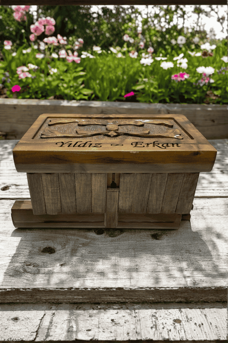 Ceviz ağacının doğal ve karakterli görünümüyle öne çıkan bu sandık, dekoratif duruşunun yanında taşıdığı anlamla da dikkat çeker.