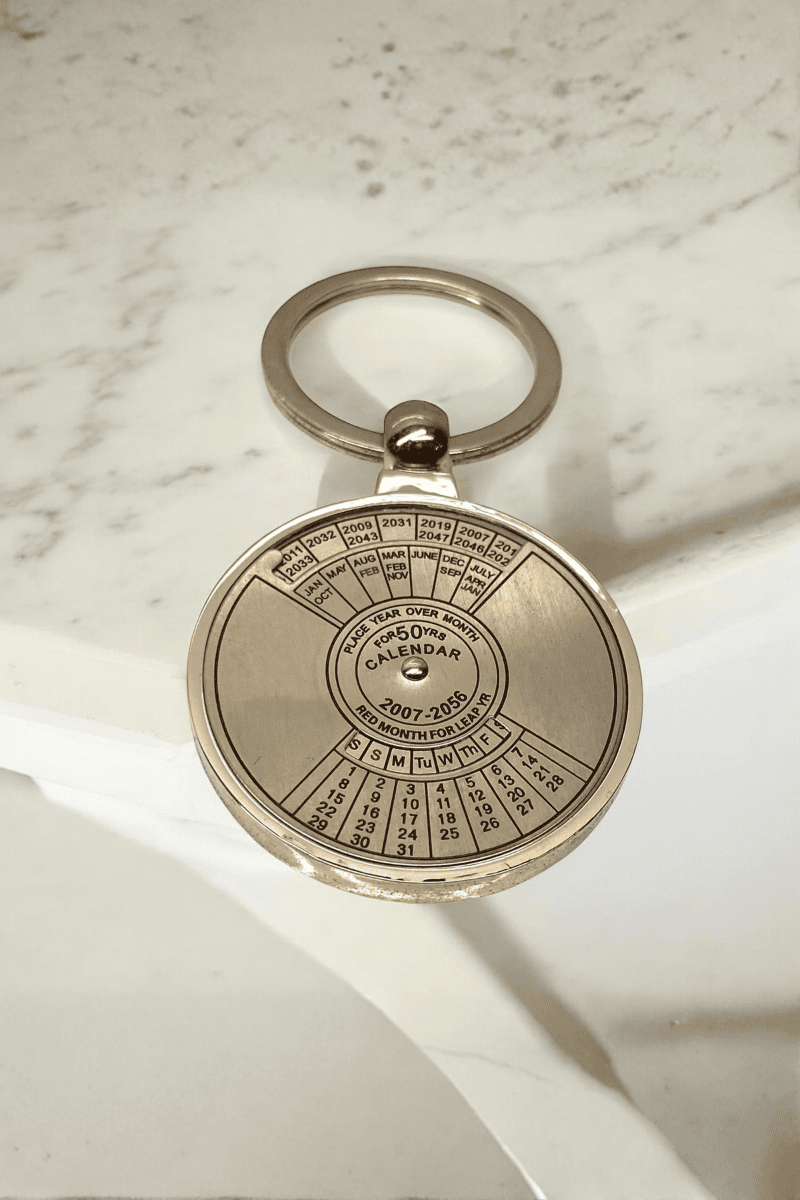 Üzerinde yer alan takvim detayı, bu ürünü yalnızca şık bir anahtarlık olmaktan çıkarır; aynı zamanda tarihlerin ve özel anların hatırlanmasını sağlayan anlamlı bir parçaya dönüştürür.
