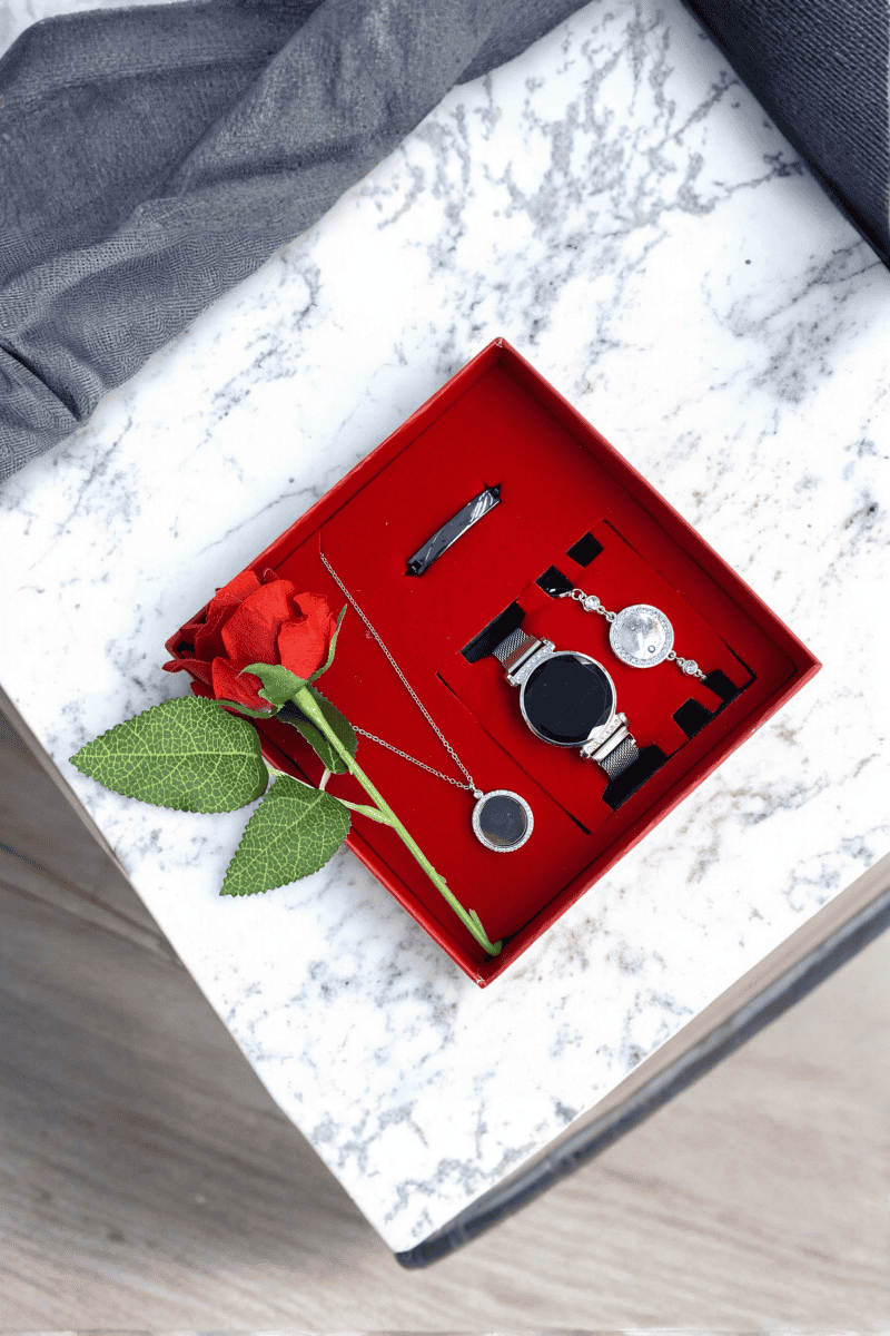 Kutulu sunumu sayesinde hediye etmeye hazır şık bir görünüm sunan bu tasarım; doğum günü, yıldönümü, Sevgililer Günü ya da içinizden gelen özel anlar için tercih edilebilir.