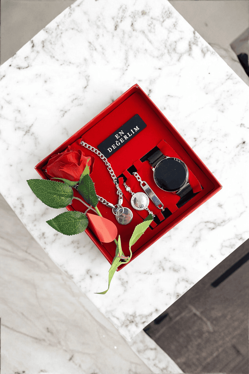 Kişiye özel hediye kutusu, şıklığı ve duyguyu bir araya getiren özel bir set olarak hazırlanmıştır.