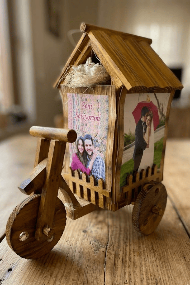Zamanın durduğu o en özel kareleri, el emeği ahşap bir tasarımın sıcaklığıyla buluşturduk. Gündüzleri masanızda veya rafınızda şık, rustik bir dekoratif obje olarak duran bu üç tekerlekli motosiklet, akşamları ise anılarınızı aydınlatan huzurlu bir gece lambasına dönüşür.