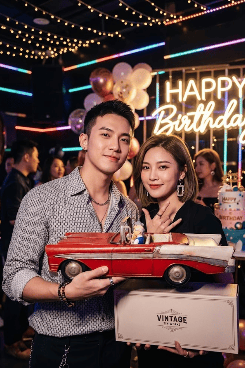 İç kısmındaki yaşlı çift figürü bu tasarımı sadece bir araba modelinden çıkarır, sevginin yıllar geçse de değerini koruduğunu hissettiren anlamlı bir objeye dönüştürür.