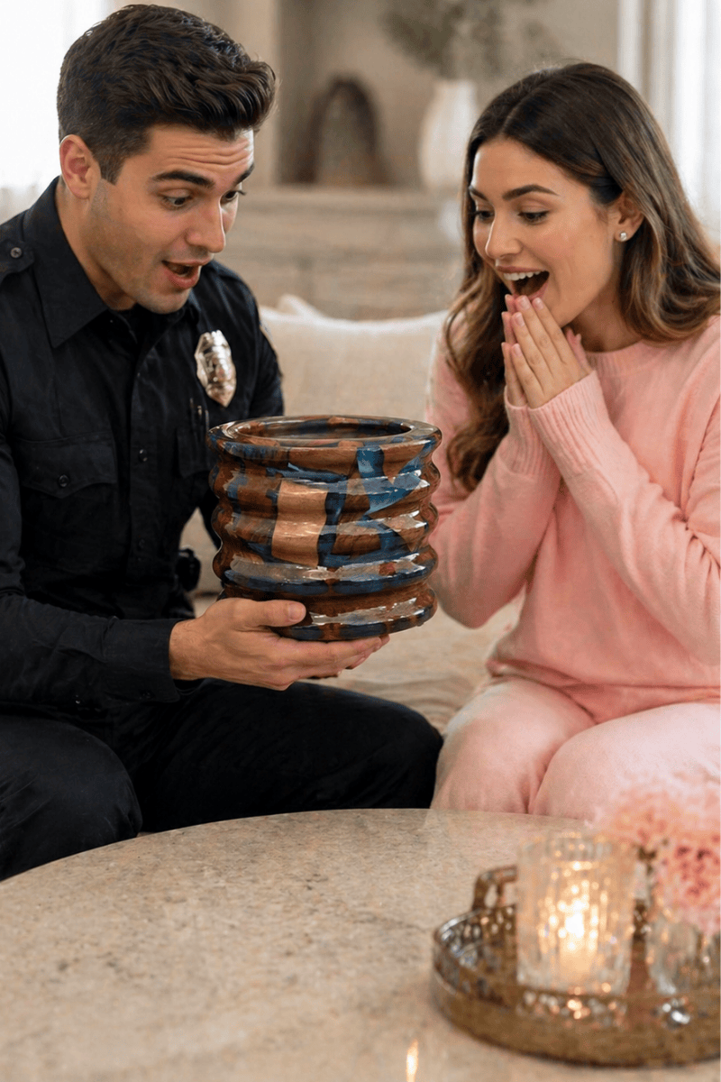 El işçiliğiyle hazırlanan bu tasarım; sehpa, konsol, vitrin, ofis masası veya çalışma alanında dekoratif tamamlayıcı olarak kullanılabilir. Geniş ağızlı formu sayesinde kuru çiçek, yapay aranjman, küçük dekoratif objeler veya özel sunumlar için şık bir kullanım alanı sunar.