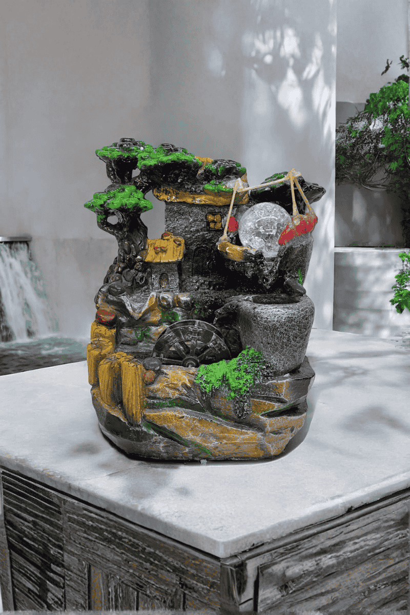 Su sesi, hareketli değirmen detayı ve doğal görünümüyle yalnızca dekoratif değil, dinlendirici bir atmosfer oluşturan şık bir tamamlayıcıdır.