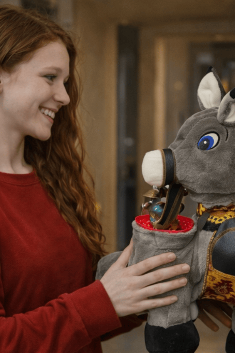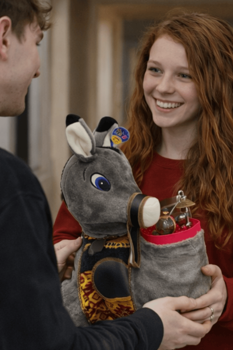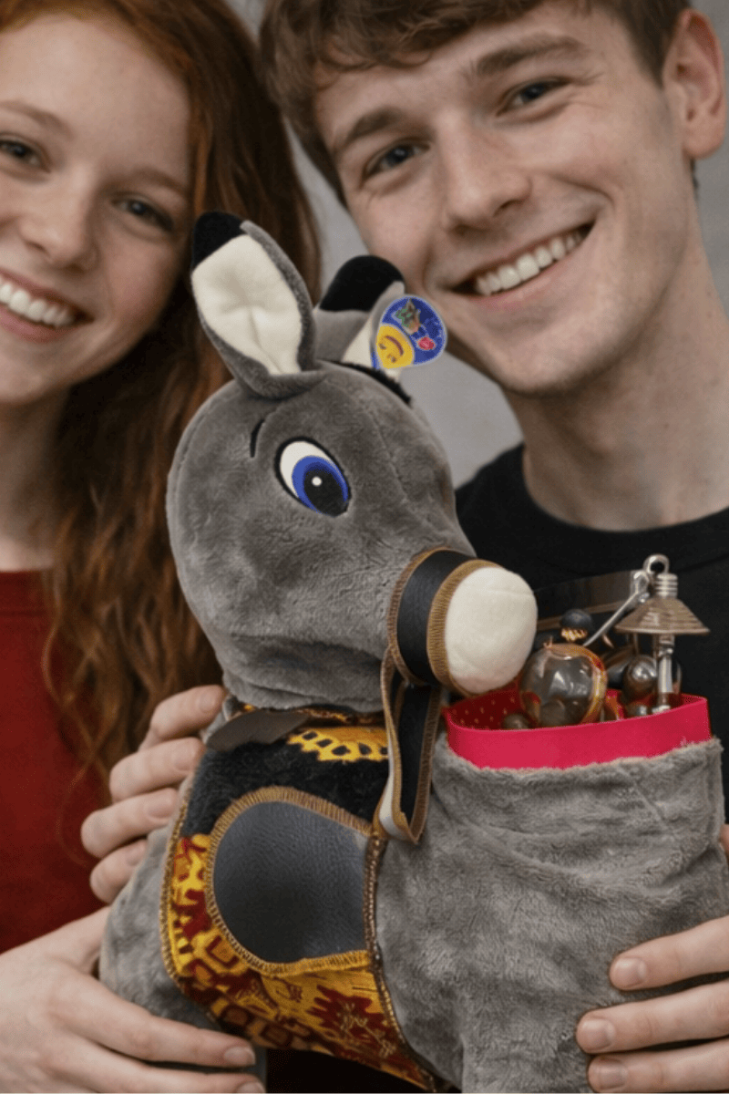 Peluş eşşek, sevimli görünümü ve sürprizli yapısıyla hediyeyi daha eğlenceli ve daha özel hale getiren farklı bir tasarım olarak hazırlanmıştır.